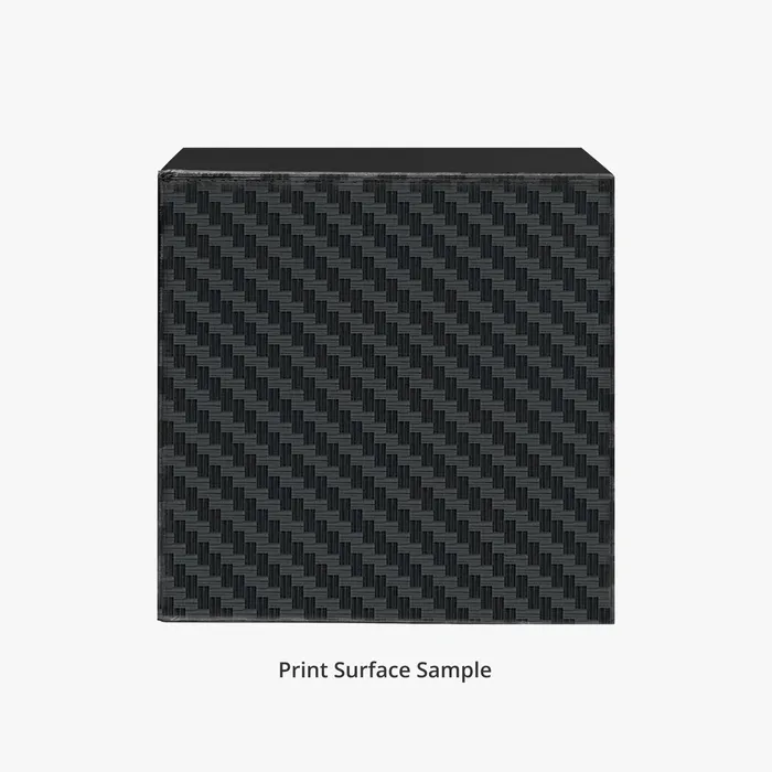 The Carbon Fiber has a very slight texture similar to real Carbon Fiber. The pattern transfers to the first layer of the 3D printed model, creating a 3D effect with a distinctive texture, especially when used with a gray carbon filament color.